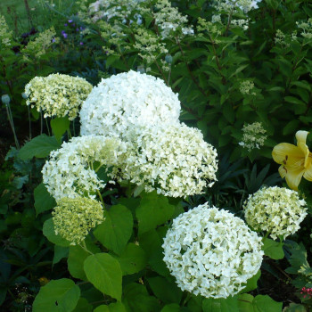 Этот сорт древовидной гортензии очень похож на Аннабель. Размер соцветий крупный 20-25 см. Высота куста 1-1,5 метра. Цветет с июня и до первых чисел сентября. Отличия этого сорта в том, что цветочки более мелкие, но посажены плотнее, чем у Аннабель, они хорошо пропускают воду при дожде, и соцветия не гнутся. У Баунти более прочные и толстые стебли, но принципиальных отличий Вы не увидите. Сорт хороший и жизнестойкий.