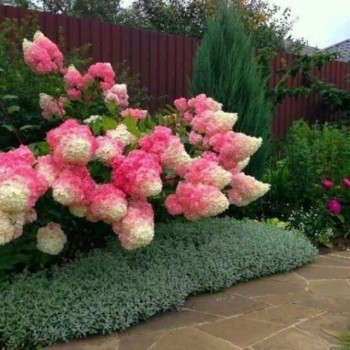 Фрейз Мельба в последнее время - нашумевший сорт и вызвавший огромный ажиотаж среди садоводов. Охота за ним ведется уже давно, но только недавно его начали производить в достаточном количестве. Чем же так примечателен этот сорт? По форме он сильно напоминает Ванилу Фрейз, особенно своей воздушностью и размерами, отличается только окраска. В начале цветения распускается белым, потом становится красным и в конце цветения темно-фиолетовым. Период цветения с июля по октябрь. Высота куста 1,5-2 метра и ширина 1,5 метра. Не упустите этот редкий сорт!