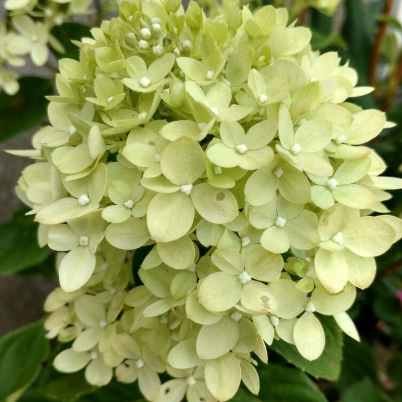 Сестренка всем известного сорта Limelight. Компактная, хорошо держит цветоносы, не распадается от ветра, не поникает после дождя. Шапочки небольшие, но очень аккуратные. Изначально белые, потом лимонные и в конце цветения превращаются в розовые шарики. Соцветия плотные размером 10-20 см, но их очень много и они покрывают весь куст практически с первого года цветения. Цветет с июля по октябрь. В высоту достигает до 1-го метра и в ширину 1 метр. Очень компактный и аккуратный шарообразный куст, отлично смотрится в саду. Сорт получил золотую медаль за свои непревзойденные качества и уникальность.