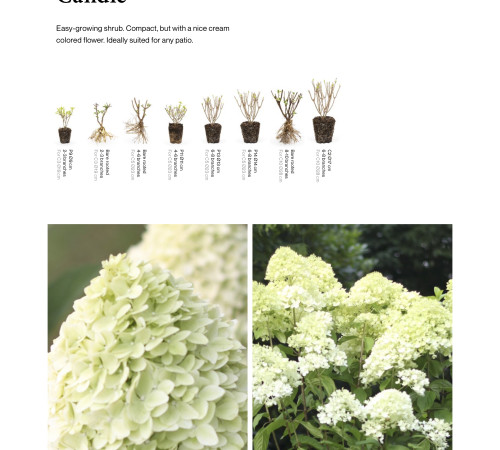 Сорт гортензии Magical Candle или магическая свеча относительно новый сорт на российском рынке. Соцветия в течение лета распускаются кремово-белыми цветами, а уже ближе к осени окрашиваются в зелено-розовый цвет или нежно розовый при посадке на солнечные места. Соцветия среднего размера 20-25 см, очень плотные со множестовом цветов, не поникают от дождя и не ломаются ветром. Взрослый куст высотой 1-1,5 метра и шириной 1 метр. Устойчивый к заболеваниям и неблагоприятным погодным условиям. Цветет с июля по сентябрь.