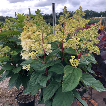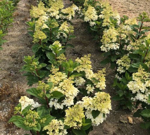 Hydrangea paniculata LISSJUDY («Petite® Lantern») - компактно растущая гортензия метельчатая, которая сначала белая, а затем меняет цвет на темно-красный. Листья темно-зеленые, овальной формы. Высота 60 см, ширина 40 см. Растение цветет с июля по сентябрь.