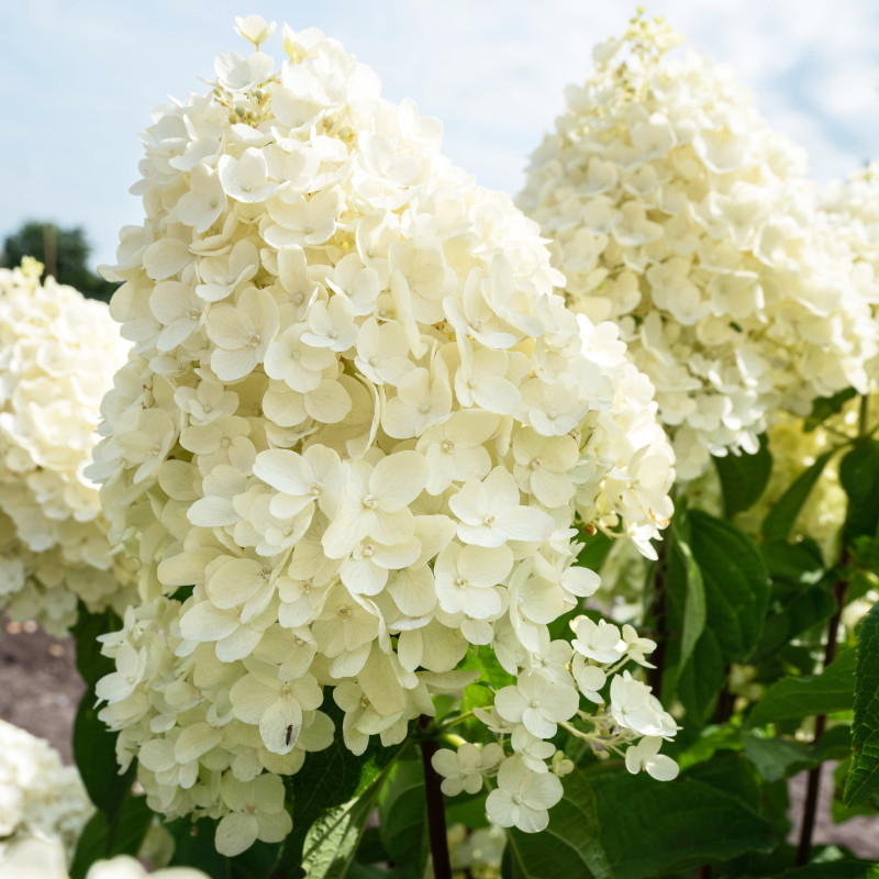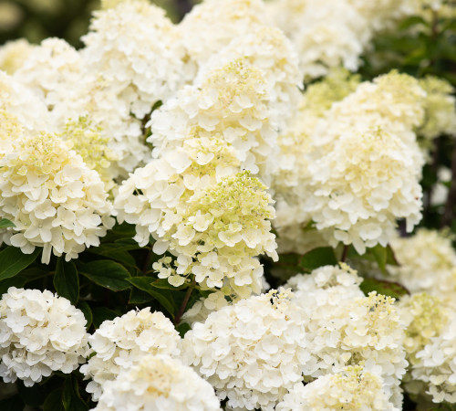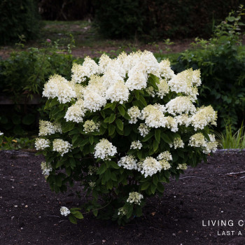 Невысокая, компактная гортензия высотой до 1-го метра, с плотными белыми шапками. Чисто белая, осенью появляется нежный розовый румянец.