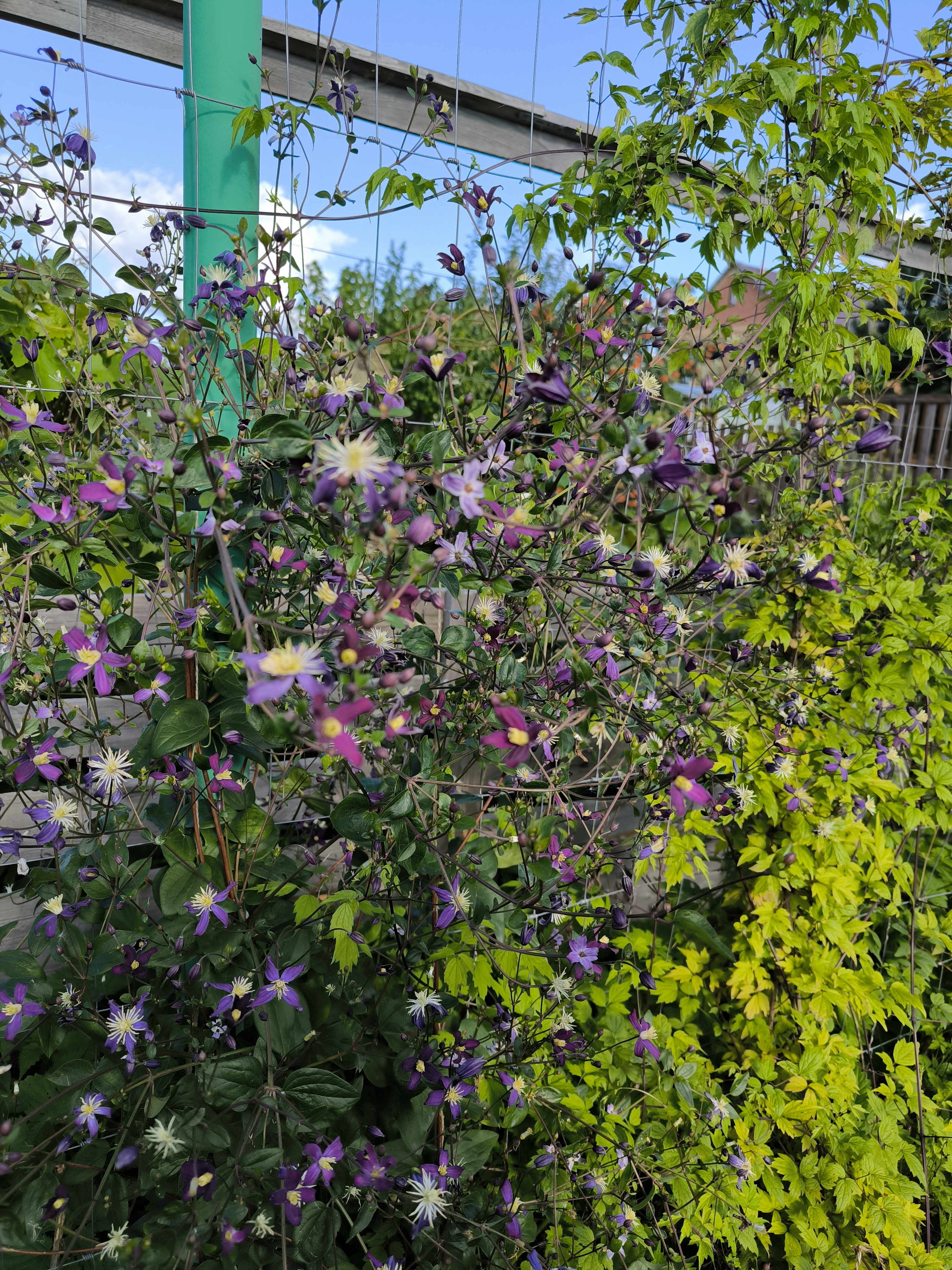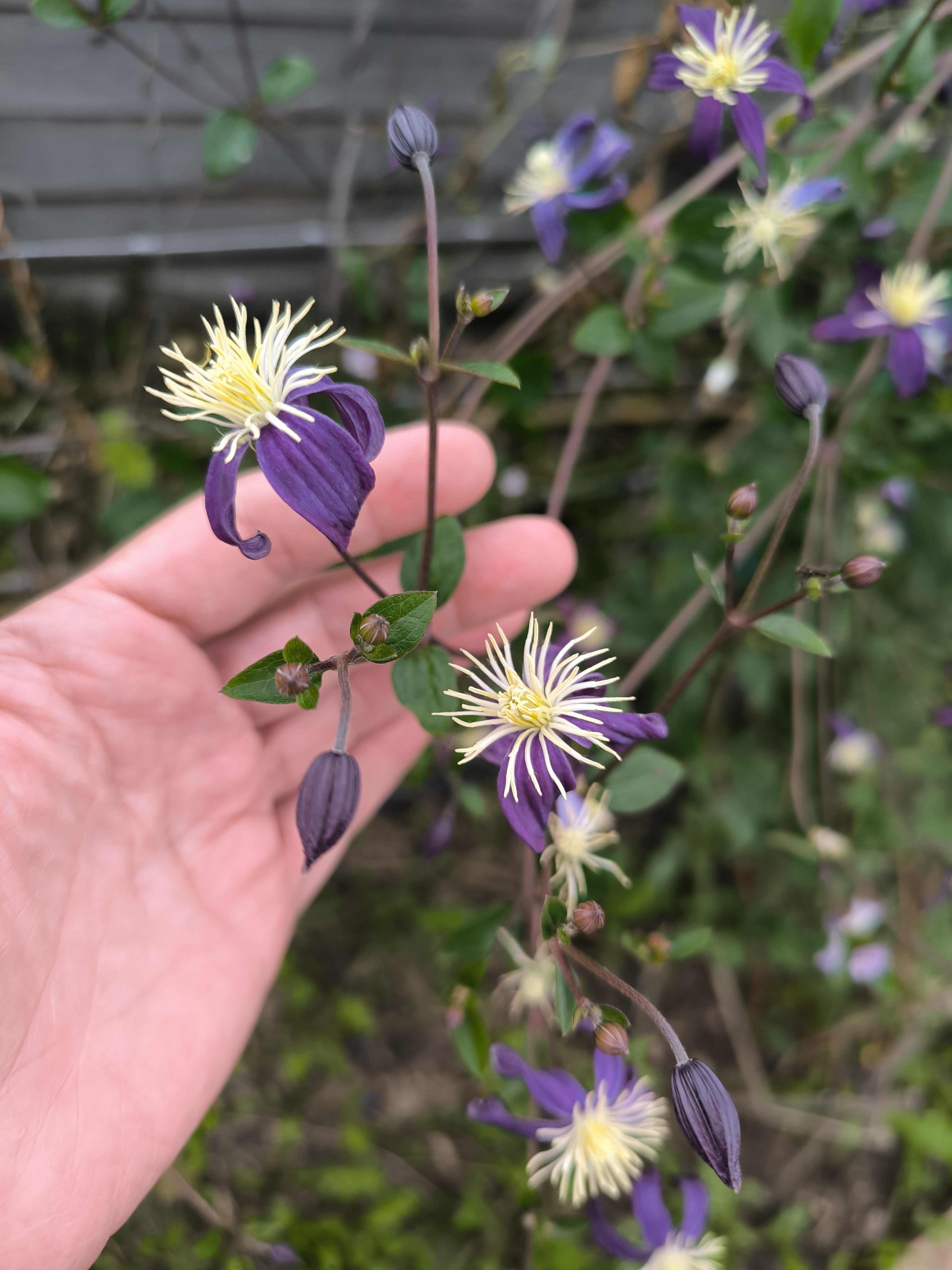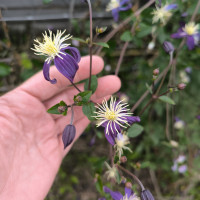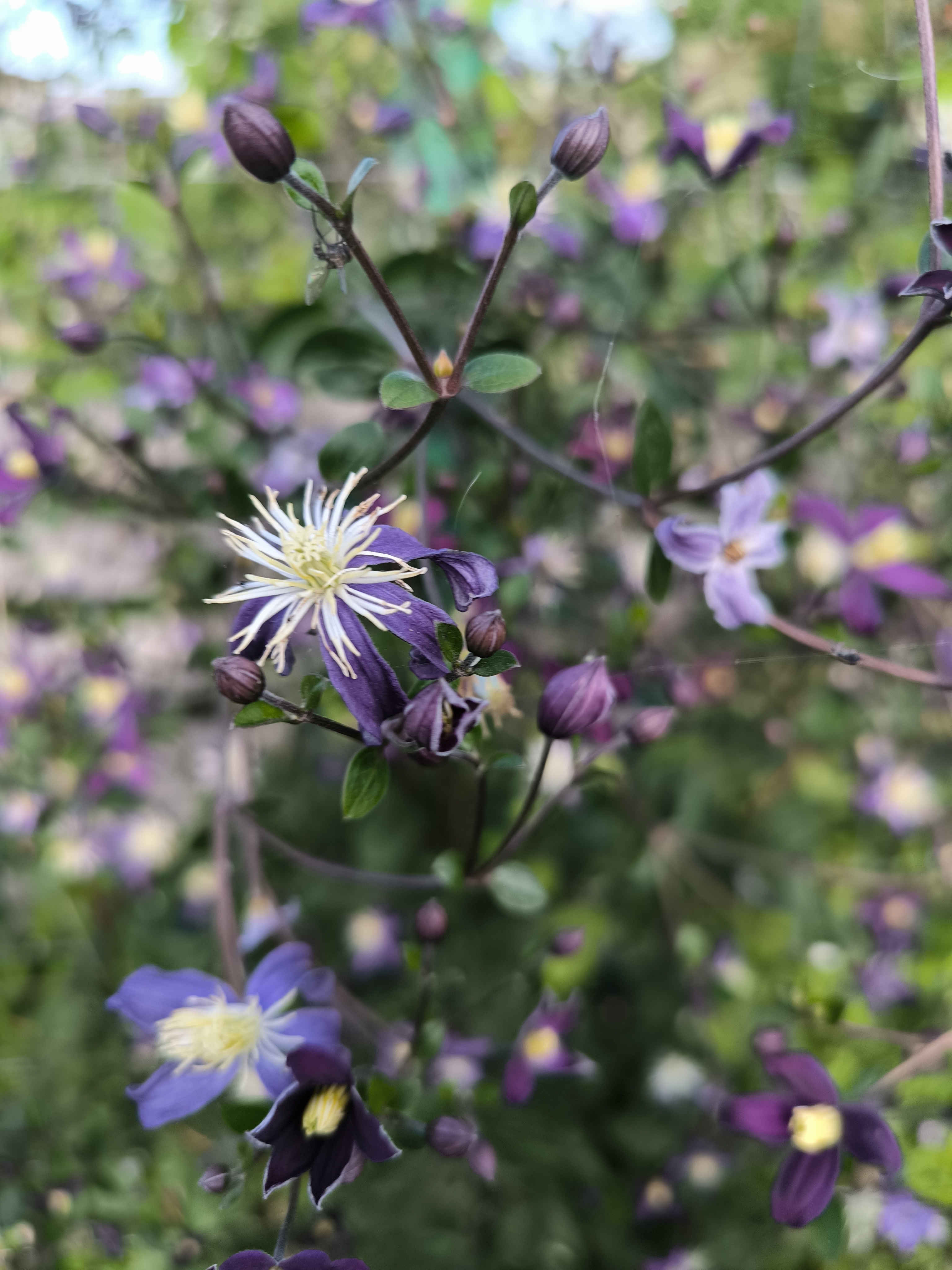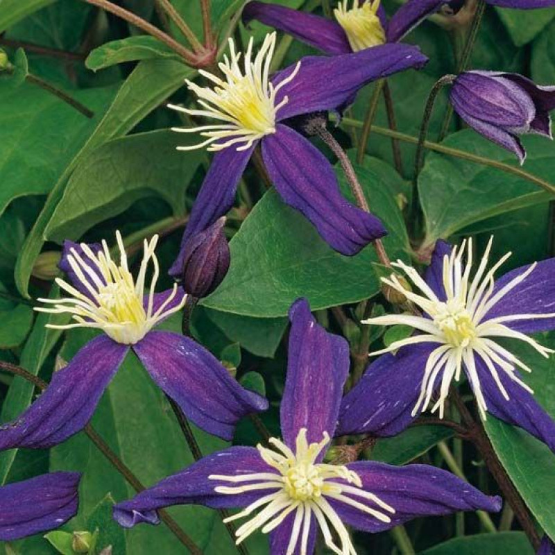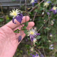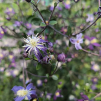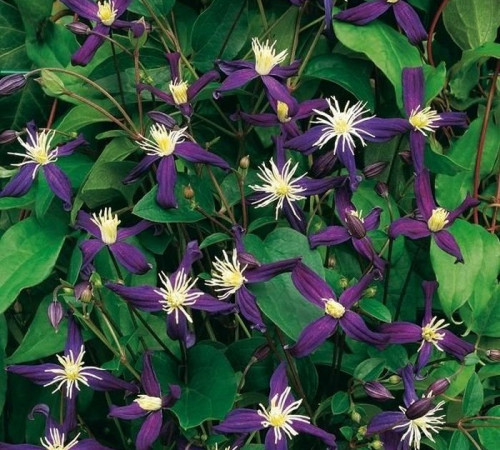 Красивое растение с ароматными цветками. Тёмно-фиолетовые лепестки контрастируют с длинными кремовыми тычинками. Цветёт с июля по сентябрь. Побеги приподнятые, не цепляются за опоры, такие как у плетистой розы. Оставленный без опоры стелется по земле. Красиво переплетается с другими растениями. Устойчив. Не выносит переувлажнения.