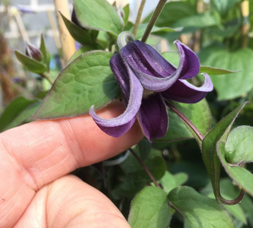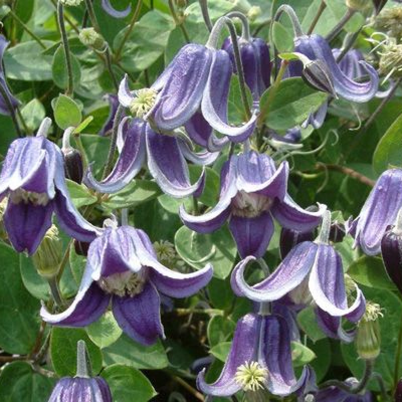 Цветки диаметром 4 см, фиолетовые, с отгибающимися лепестками. Цветёт в июне-августе на побегах текущего года. Высота 150 см.