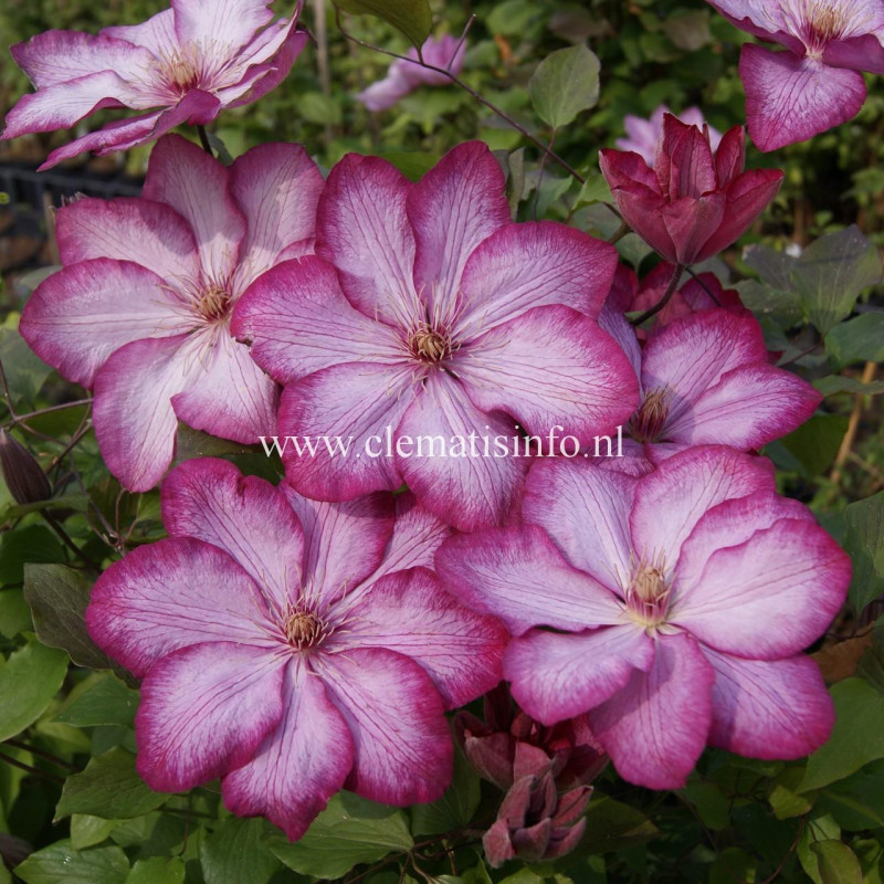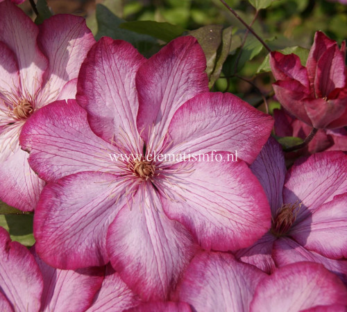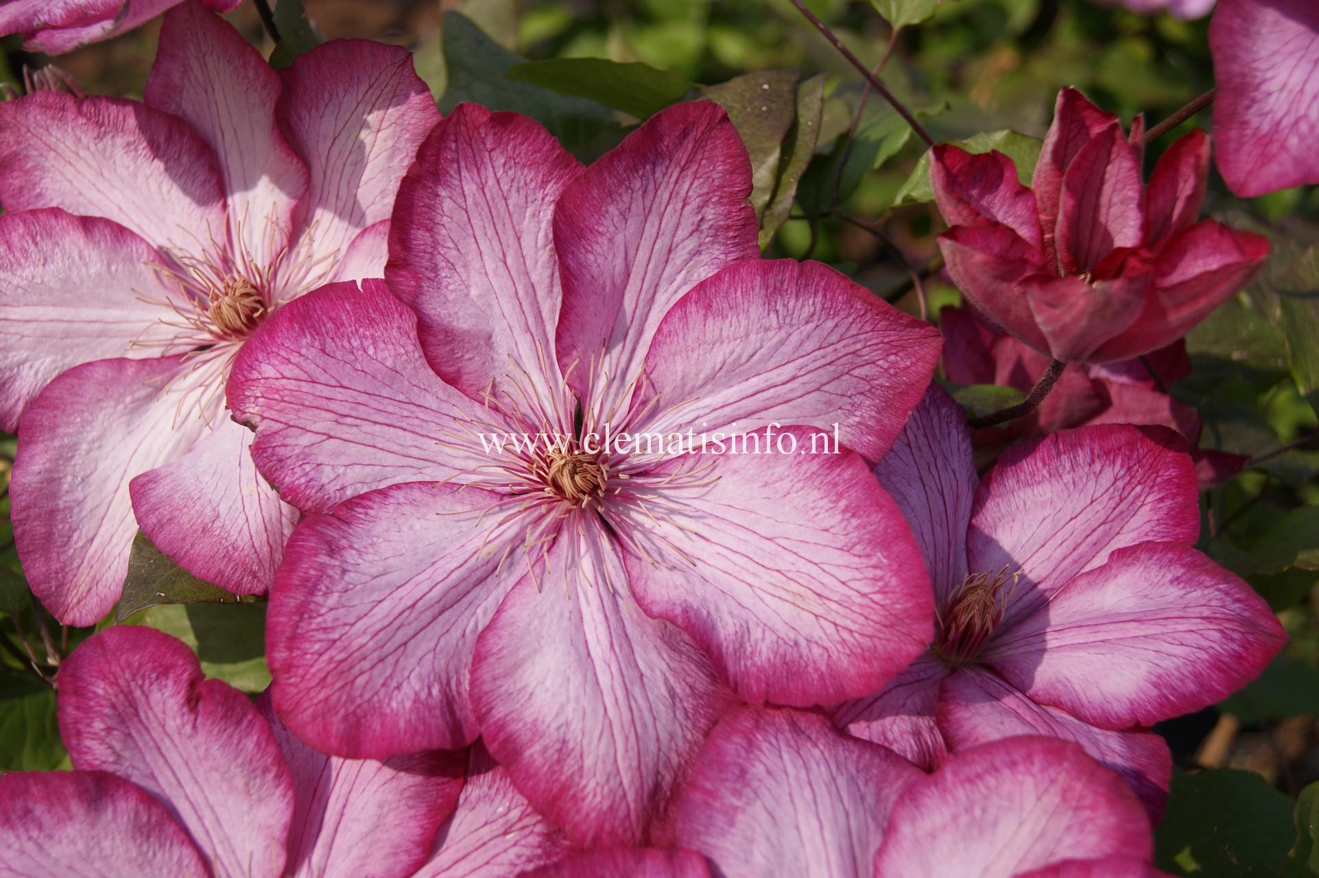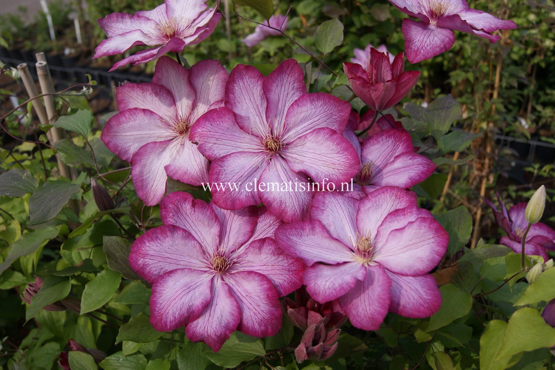 Цветки диаметром 10-12 см, светло-розово-белые с красной каймой. Тычинки красно-пурпурные, светлые в основании. Цветёт в мае-июне на прошлогодних побегах. Высота 200 см. На зиму в средней полосе требуется обязательное укрытие.