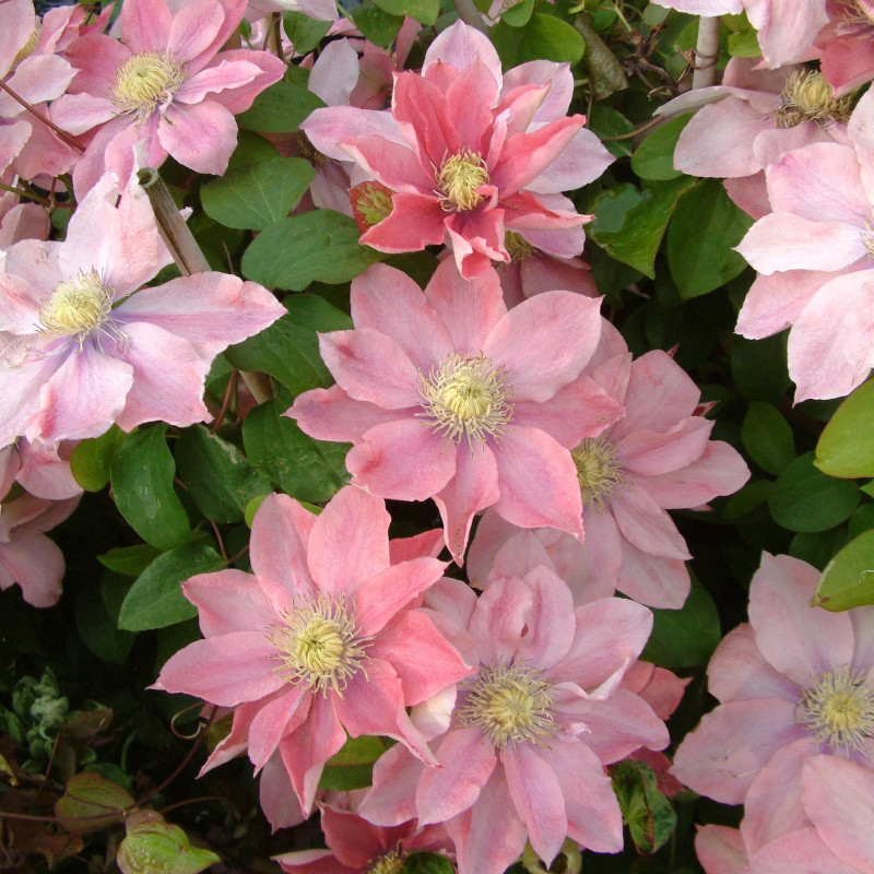 Японский сорт с редкой, притягивающей внимание, лососево-розовой окраской цветков, с которой великолепно гармонируют ярко-желтые пыльники. Цветки почти округлые, диаметром 8-12 см, складываются из 8 лепестков, но в весенних цветках, на старых побегах, их может быть значительно больше. Цветет в мае-июне, а после обрезки в августе-сентябре. Достигает высоты 2м.