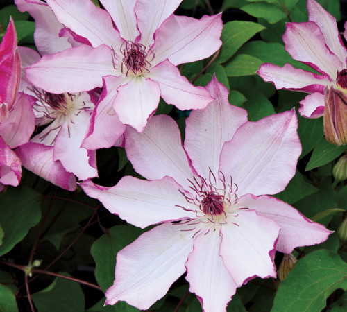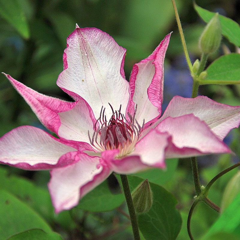 Японский сорт с белыми или светло-розовыми цветками с розовыми или розово-пурпурными краями лепестков. Цветки диаметром около 16 см, с 6-8 лепестками, розовыми с нижней стороны. Тычинки с фиолетово-красными пыльниками на кремовых нитях. Цветёт в мае-июне и августе-сентябре. Дорастает 2-3 м высоты.