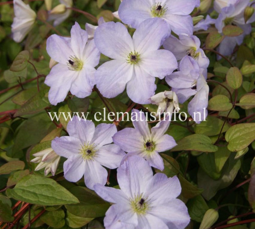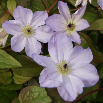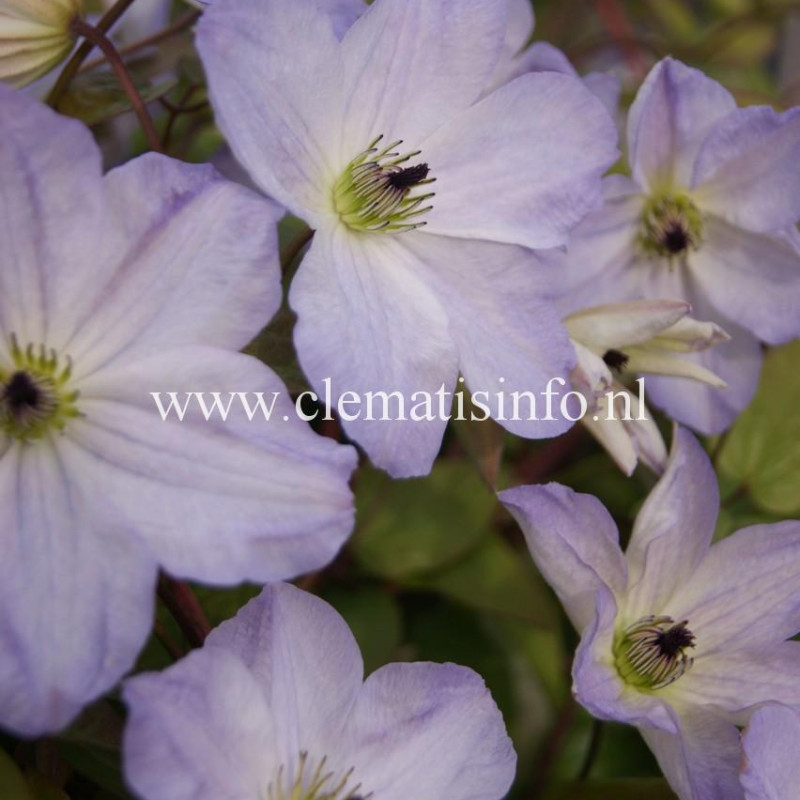 Это очень обильно цветущий клематис с июня до сентября сорт с бледными фиолетово-синими цветками (5-7 см) выглядит свежо – имя «морской бриз» ему подходит. Со временем центр цветка выгорает до белого, еще больше выставляя напоказ темные тычинки. Может расти как на солнце, так и в частичном затенении. Плети достигают 3 м в длину. Группа обрезки 3.