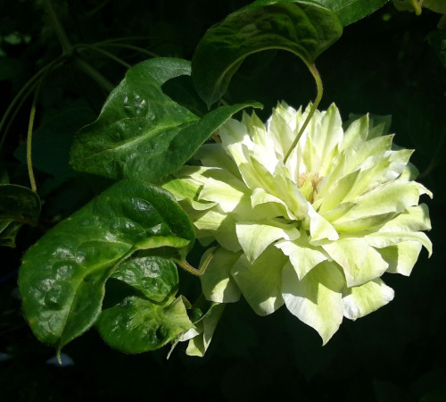 Японский оригинальный сорт с полными цветками диаметром 11-14 см. Лепестки заострённые, слегка гофрированные, бутоны светло- зелёные с розовым оттенком. В полном расцвете белые, иногда с зелёной полоской по центру. Лепестки с двух сторон одинакового цвета. Тычинки кремовые, заметные только при полном цветении. Цветёт на прошлогодних побегах, почти с самого начала отростка, со второй половины мая до июня. Достигает высоты 1,5 м.