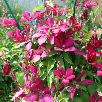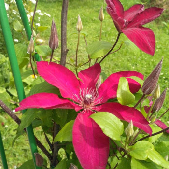 Цветки красновато-бордовые, бархатистые, со слегка светлой полоской посередине лепестка. Временами на лепестках встречаются белые нерегулярные пятнышки. Тычинки имеют пурпурные пыльники на бело-розовых нитях. Цветки диаметром около 16 см. Цветёт долго и обильно с мая по сентябрь.