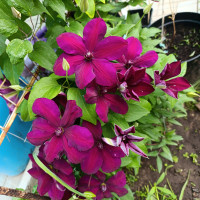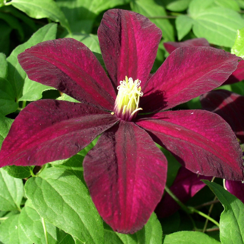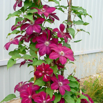 Эффектный сорт с искристыми, красными, шелковистыми цветками с тёмно-красными тычинками. Цветёт с июня по август. Особенно хорош для выращивания у ограждений, стен, беседок, решёток. Может карабкаться по натуральным опорам, напр. небольшим деревьям и кустарникам.