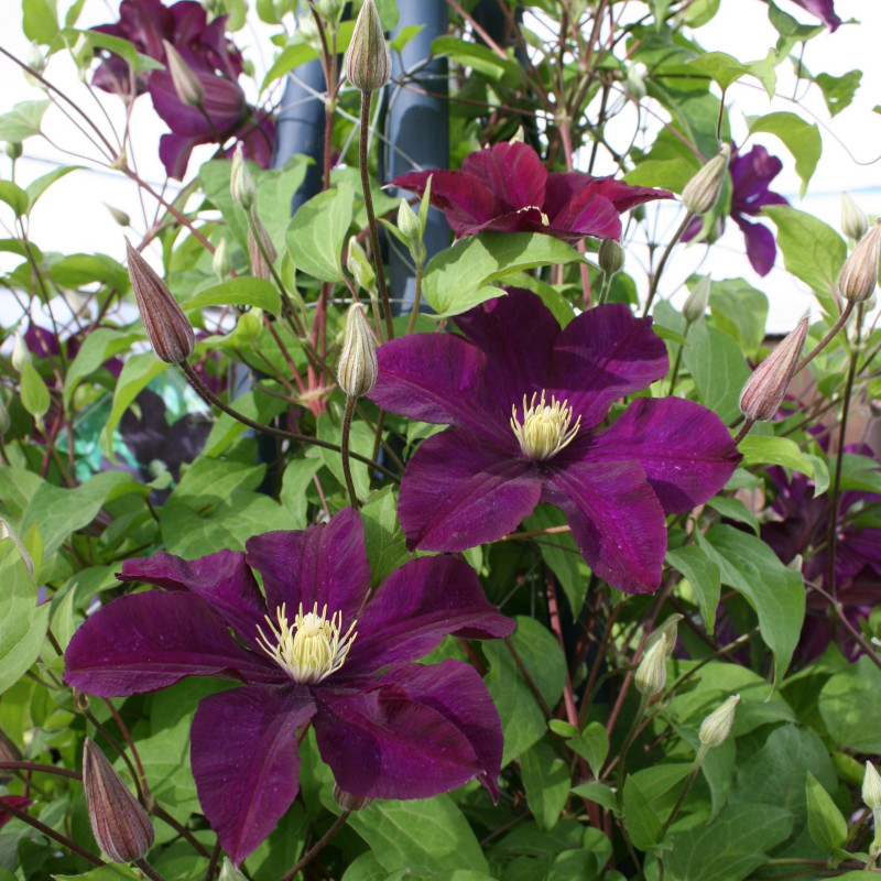 Устойчивый среднерастущий, обильноцветущий польский сорт. Цветки тёмные, пурпурно-фиолетовые с золотистыми тычинками, раскрываются с июня по сентябрь. Идеально подходит для посадки у ограждений, стен, беседок, пергол, решёток и пр. Может карабкаться по натуральным опорам, напр. небольшим деревьям и кустарникам. Особенно хорош для выращивания в больших контейнерах на балконах и террасах.