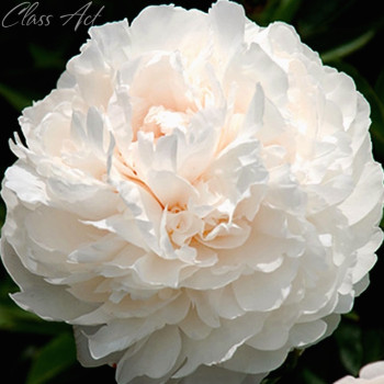 Махровый розовидный. Цветок в начале роспуска нежно-кремовый с розовым оттенком, в процессе роспуска становится белоснежным с чуть заметной розовым свечением изнутри. Хорошей формы. Несмотря на крупные размеры куст не разваливается. Стебли прямостоячие. Наружные лепестки округлые, крупные, плотные, окружают высокий центр. Есть тычинки. Листва тёмно-зелёная. Стебли очень прочные.