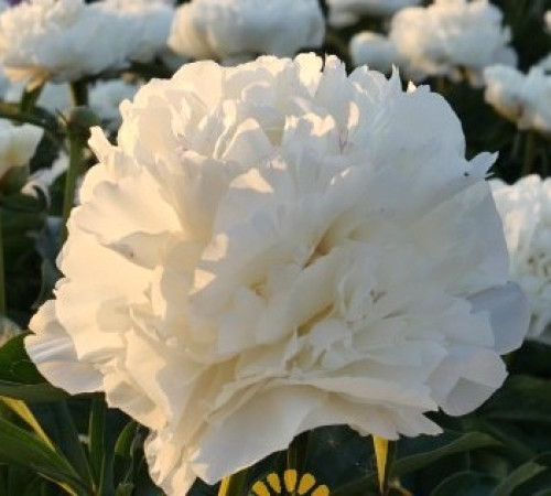 Розовидный-шаровидный, кремовый с карминовыми мазками по центральным лепесткам, диаметр 16 см, высота 85 см, аромат приятный, средний срок цветения