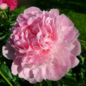 Очень красивый и очень крупный цветок, на второй год посадки выдал 4 побега, диаметр цветка 20 см, а толщина 11 см, боюсь представить какие они будут дальше с годами. Очень красиво. Стебли и правда не выдерживают такой вес цветка, высота куста наверно 100 см точно. Зелена листва, очень плотная, не болеет.