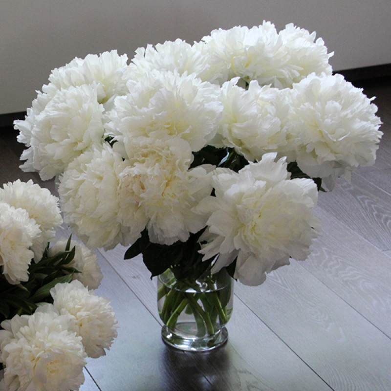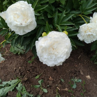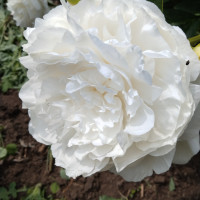 Махровый розовидный. Цветок очень крупный, диаметром 20 см, густой, белый с кремовым свечением в центре. Высота 85 см. Стебли средней прочности, низкооблиственные. Листья крупные. Цветение обильное, в поздние сроки.