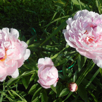 Средне-поздний сорт. Густомахровый, розовидный, очень крупный. Жемчужно-розовые, нежные и воздушные цветы. Немного бледнее с внешней стороны. Могут появляться малиновые мазки вокруг центра. Очень ароматный. Крепкие стебли.