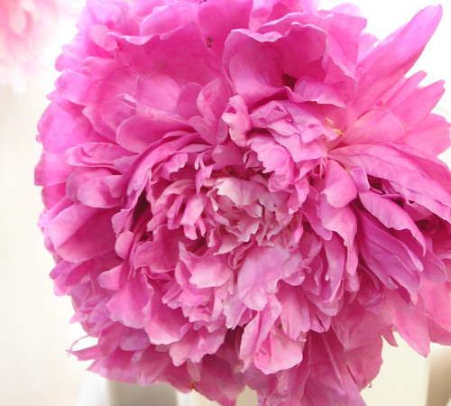 Цветок из маленькой невзрачной тарелочки переходит в большущую розу. Красивый цветок. Пион высокий и очень хорошо нарастает куст. Пахнет резковатым пионовым запахом.