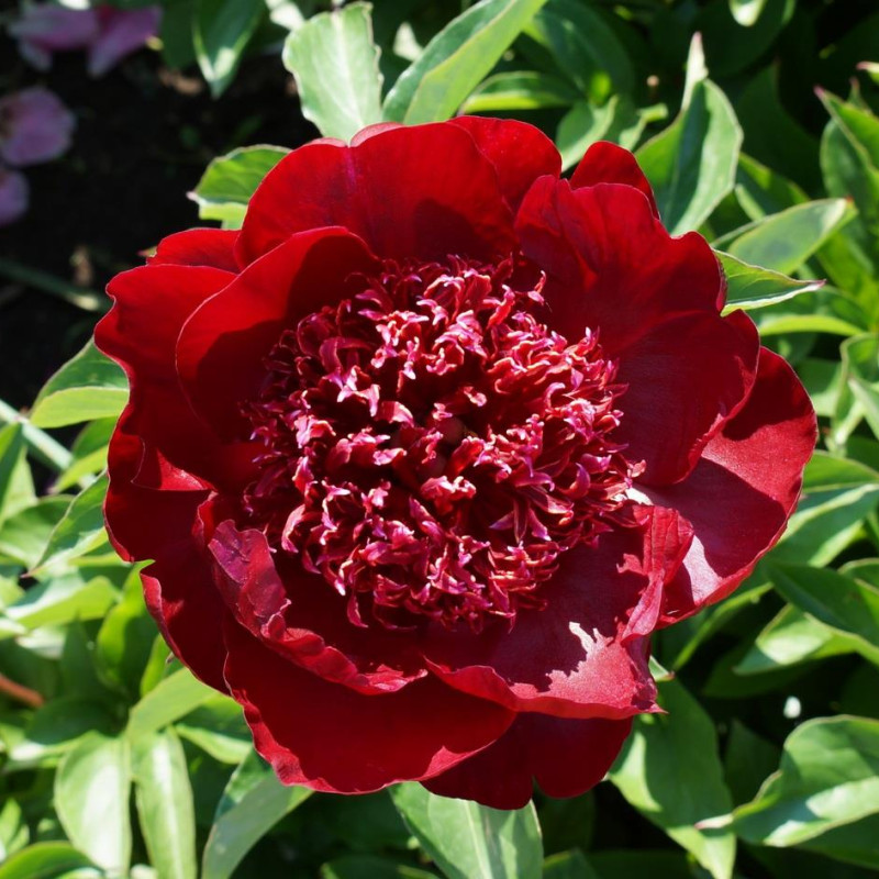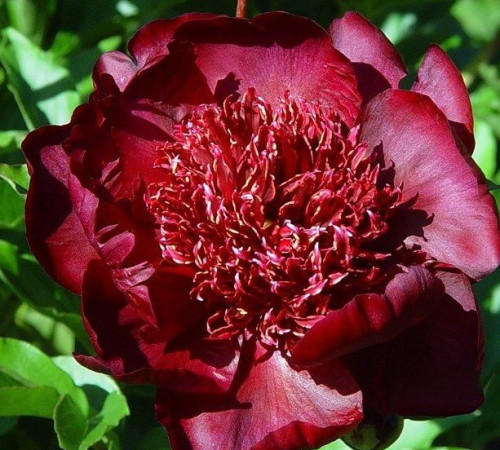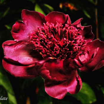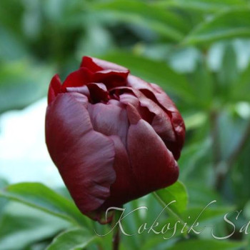 Японской формы. Тёмно - винно - красный, с золотым окаймлением. Цветет очень длительное время, сохраняя форму цветка до окончания цветения. Стебели темноокрашенные. Довольно уникальный сорт!