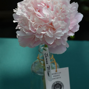 Розовидный, розовый с жѐлтым оттенком, диаметр 15 см, аромат приятный, высота 100 см, средне-поздний срок цветения