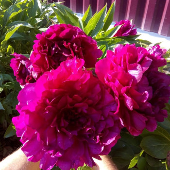 Полушаровидный, тѐмно-карминно-красный, диаметр 15 см, аромат слабый, высота 70 см, средне-поздний срок цветения