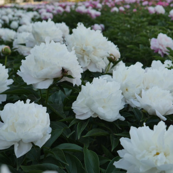 Двойной тип; очень большой; Средний сезон. Белый с кремовым оттенком в глубине, малиновыми прожилками на внешней стороне защитных лепестков и иногда несколькими слабыми малиновыми краями в центре; сильный аромат розы. Среднего роста; обильноцветущие; крепкие стебли. Хорошая темно-зеленая листва с зелеными прожилками. Огромные, мохнатые, довольно плоские цветки с глубоким воронкообразным центром и огромными широко раскинувшимися лепестками. Требуется время, чтобы проявить себя наилучшим образом, но обычно считается одним из лучших сортов. Некоторые эксперты подтверждают утверждение, что эта разновидность часто имеет малиновые отметины. «Очень редко KELWAY’S GLORIOUS будет иметь красные отметины на центральных лепестках, обстоятельство, которое может появиться на любом махровом цветке, рыльца которого были бы красными, если бы цветок был одиночным. Красная отметина или красный край некоторых центральных лепестков цветов пиона вызван несовершенным преобразованием рыльц в лепестки, остатки последних остаются и дают цвет, который появляется на краях некоторых центральных лепестков ». Фьюкс. «Внешние круги лепестков очень широкие, к центру становятся все меньше; центральные лепестки маленькие и скученные »(Сондерс).