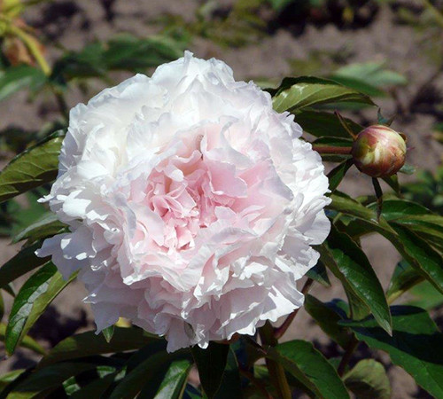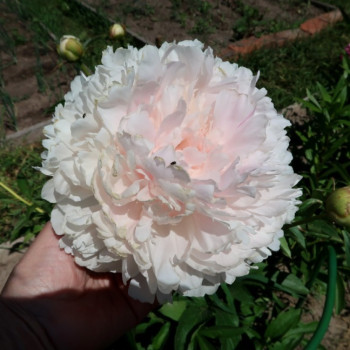Махровый розовидный. Цветок крупный, 16 см, красиво сложенный, при роспуске сиренево-розовый, в процессе отцветания светлеет до кремово-розового. Края лепестков бахромчатые. Есть боковые бутоны. Листва тёмно-зелёная, прочная. Высота 95-105 см. Стебли требуют опоры. Срок цветения очень поздний. Подходит для срезки.