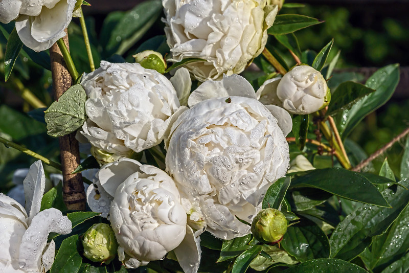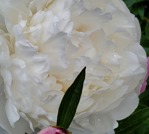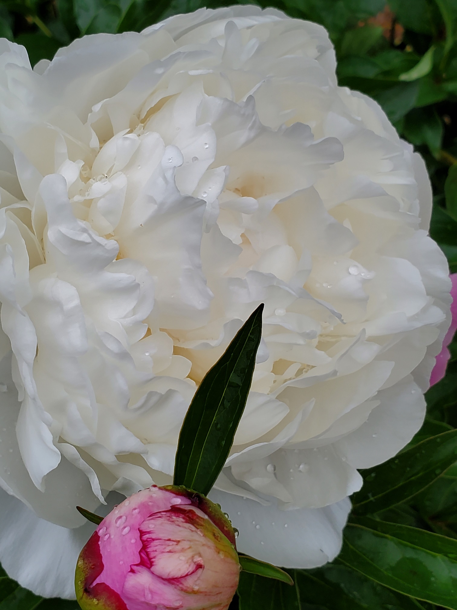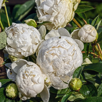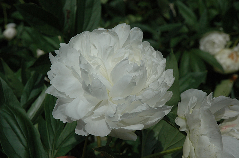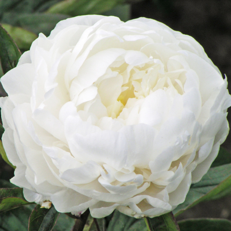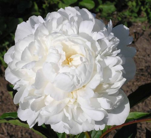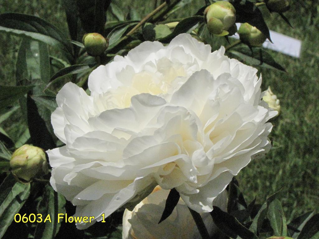 Махровый; очень большой; рано цветущий. Белый с оттенком слоновой кости, по мере роспуска становится чисто-белым без отметин; умеренно ароматный. Среднего роста; довольно обильноцветущий. Листва крупная, темно-зеленая. Его широкие, перекрытые, изогнутые лепестки и компактная форма делают этот пион одним из самых совершенных.