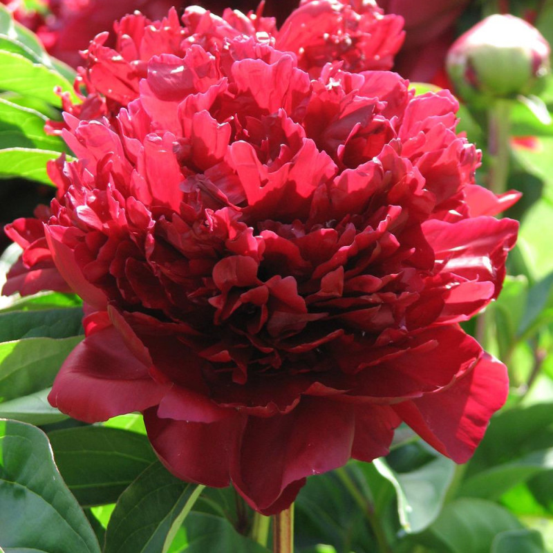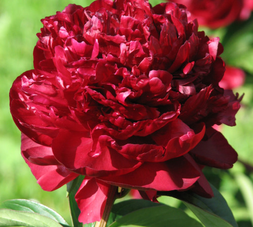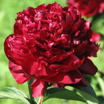 Двойной, большой, ранне-средний срок цветения. Бордово-малиновый, с шелковистым черным блеском, без аромата. Обильно-цветущий, прямые жесткие стебли. Часто говорят, что это один из самых темный пионов. Он часто имеет рыхлую форму, с неровными лепестками, смешанными с множеством тычинок. Цветы на взрослом кусте очень пышные, в форме шара.