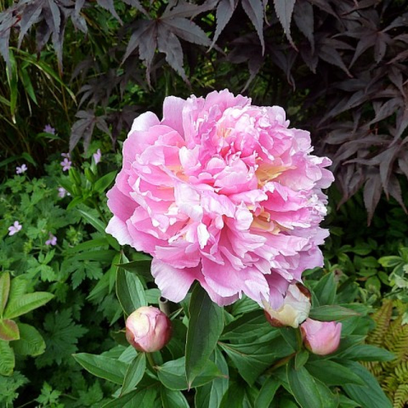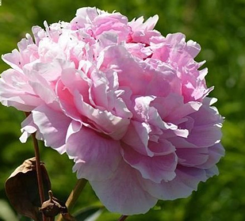 Розовидный, ярко- розовый с более светлым краем, диаметр 18 см, аромат нежный, высота 80 см, средне-поздний срок цветения