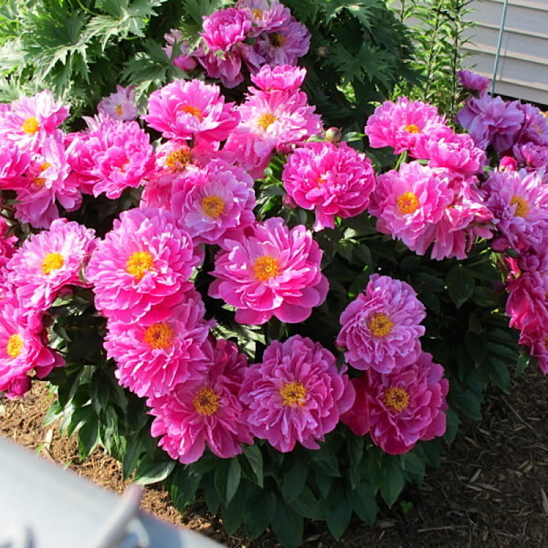 Сорт внутривидовой от p. lactiflora. Полумахровой формы. Розово - красный, в центре тычиночного круга хохолок из розово - красных лепестков. Отличительная черта - все бутоны смотрят вверх. Очень декоративен. Золотая медаль за ландшафтные заслуги "AWARD OF LANDSCAPE MERIT"