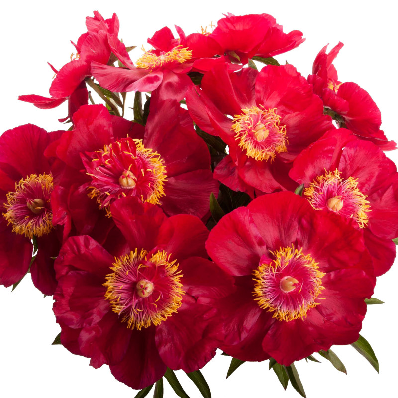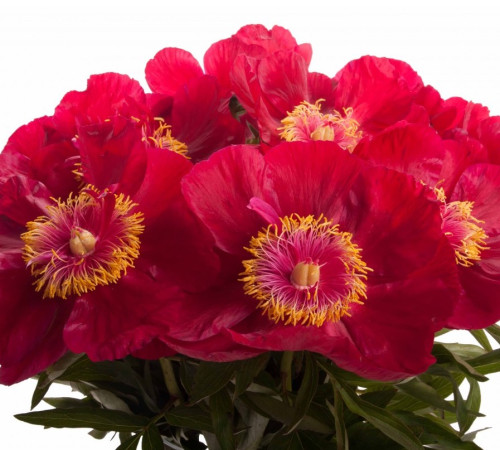 Яркий красный цветок с блестящими лепестками и желтыми тычинками. Чашевидные цветы хорошо удерживаются на крепких жестких стеблях. Достоинство сорта - невысокий, цветы находятся на вершине листвы.