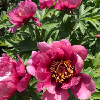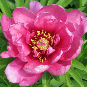 Родители: молочноцветковый Martha W. x Golden Era. Впервые зацвел в 2000 г. Темно-розовый, форма розы, тычинки, пыльца, семян нет. 2-3 почки на стебле, надежные, очень хорошего качества, цветоносные. Превосходная прочность ствола, высота 90 см. Среднераннее цветение, отличная облиственность, устойчивость к болезням. Полумахровые, а иногда и махровые цветки типа древовидного пиона на травянистых стеблях. Цветы темно-розового цвета с кремовым оттенком, которые слегка тускнеют по мере взросления, но остаются привлекательными при опадении лепестков. Цветы до 15 см в диаметре имеют крупные, очень привлекательные цветки темно-сливового цвета. Большое количество боковых почек (1-2 на стебле) обеспечивает длительный период цветения до 2-х недель. Привлекательный центр содержит узкий круг тычинок с розовыми нитями, окружающими 4-5 плодолистиков бледно-зеленого цвета с темно-розовыми рыльцами, окруженными кремовой оболочкой. Довольно обильно цветущий, с цветками, расположенными на превосходных прямостоячих или слегка изогнутых стеблях прямо над листвой и за ее пределами, что делает его превосходным ландшафтным сортом. Растение очень морозостойкое, стебли полностью вырастают из зимующих почек под землей. Великолепная темно-зеленая листва, которая сохраняется до осени. Хороший, приятный аромат.