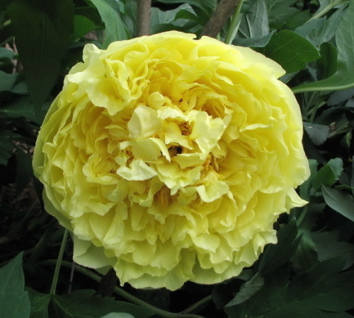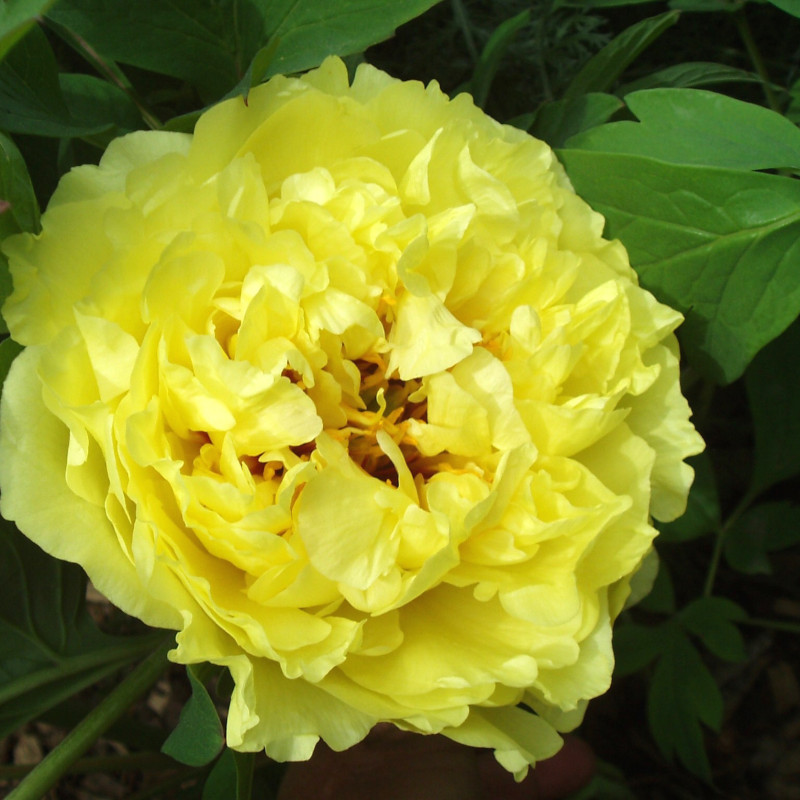 Полумахровые или махровые, ярко-жёлтые цветы с несколькими красными метками-всполохами у основания лепестков, которые иногда скрыты в глубине бутоны. Один из самых густомахровых желтых ИТО-гибридов!!!