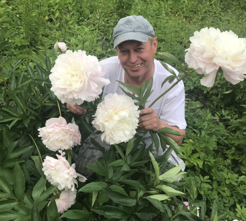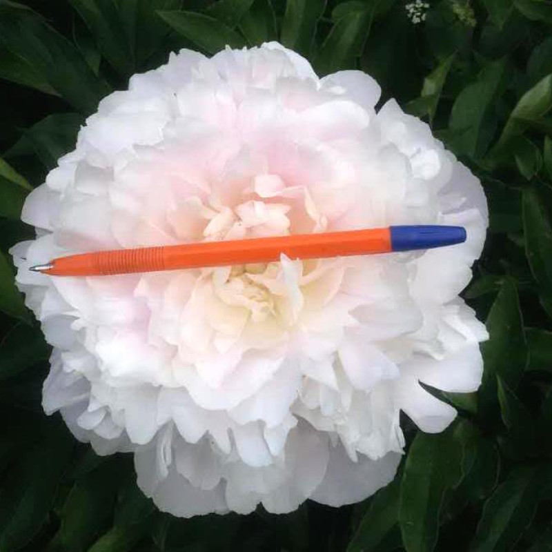 Юбилейный - Yubilejny'j. (Краснова Н.С., 1959, СССР). Травянистый. Сорт от p. lactiflora. Махровый розовидный, скорее плоский с широко поставленными лепестками. Светло - розовый, с жёлтым основанием внутри, позднее почти белый. Стебли изгибаются. Листья крупные, светло - зелёные. Высокие хозяйственные признаки. Тычинки отсутствуют. Пестики отсутствуют. Есть боковые бутоны. Ф=18 см. Н=90 см. Ароматный. Средне - поздний срок цветения.
