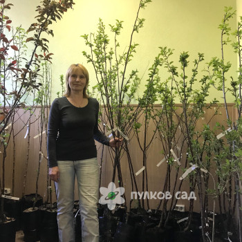 Достоинства сорта: скороплодность, регулярная высокая урожайность, высокая степень самоплодности, высокая регенеративная способность, плоды нарядной окраски.