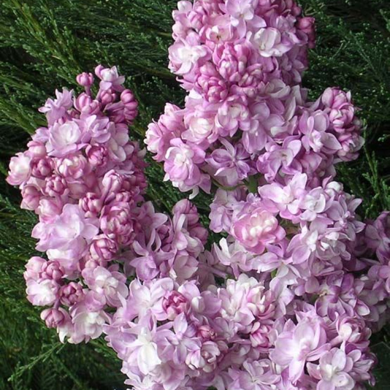 Syringa vulgaris 1952 Вехов D V-II Бутоны пурпурные. Цветки светло-фиолетовые с розовым оттенком, стойкие к выгоранию, крупные, диаметром до 3 см, густомахровые - из 2-3 венчиков, с приятным ароматом. Соцветия пирамидальные, плотные. Листья тёмно-зелёные. Кусты невысокие - до 2м, компактные, хорошо облиственные, красивой формы с гармоничными пропорциями. Цветёт обильно, в средние сроки.